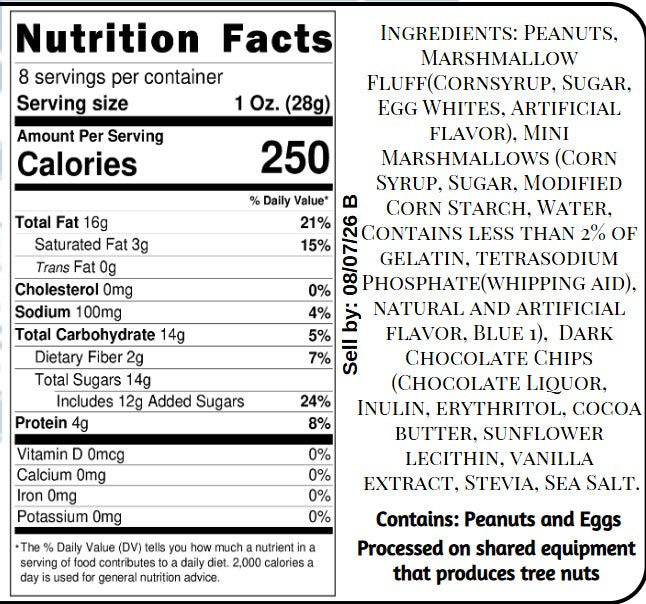 Meet Frosty Fluff- a decadent winter twist on classic peanut butter. this gourmet spread blends creamy roasted peanuts with rich dark chocolate chips and topped with fluffy marshmallows for the perfect balance of salty and sweet! Every spoonful tastes like a cool weather dessert, delivering campfire meets hot cocoa vibes in one irresistible jar. Spread it, dip it, swirl into oatmeal, or enjoy it straight from the jar this holiday peanut butter is the ultimate cozy winter treat!