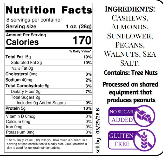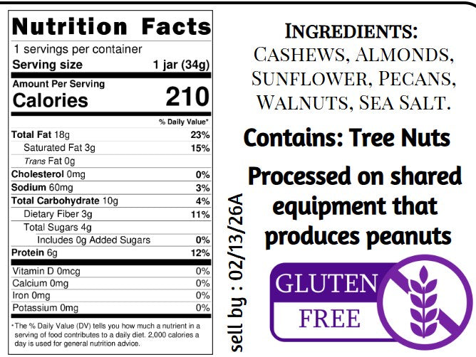 Nut'n but Nuts contains the best blend of nuts...cashews, almonds, sunflower seeds, pecans and walnuts🥜. How can that not be delicious?!? It is awesome on sandwiches, on fruit, in smoothies....anything you can think of! This is a raw and roasted nutbutter blend.